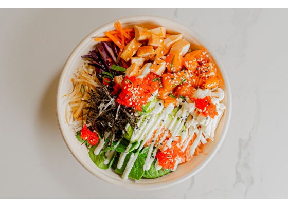Karaage csirke, Panko bundás tintahal fűszeresen lime-mal Pirított tészta zöldségekkel , Rák nuggets 2db és Cornflakes csirkemell 3db, sült burgonya, öntettel, Sült csirkemell panko bundában, Kínai tavaszi tekercs 12db, Édesburgonya hasábok sütve, 2xSió Szűrt almalé 200ml,