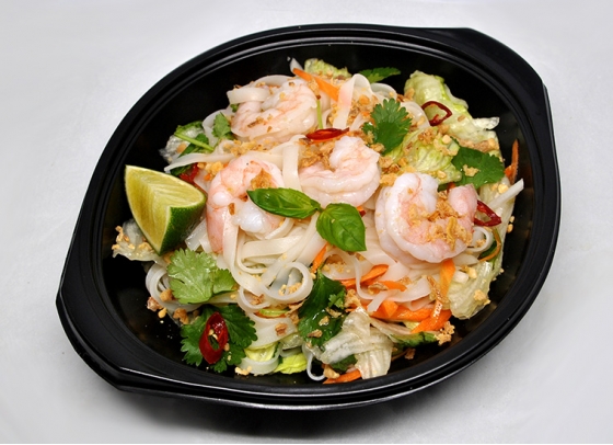 Thai leves rizstésztával, fűszernövényekkel és friss zöldségekkel